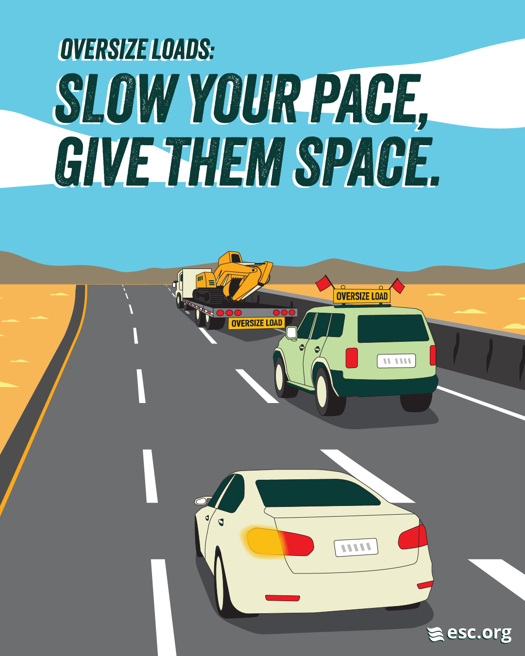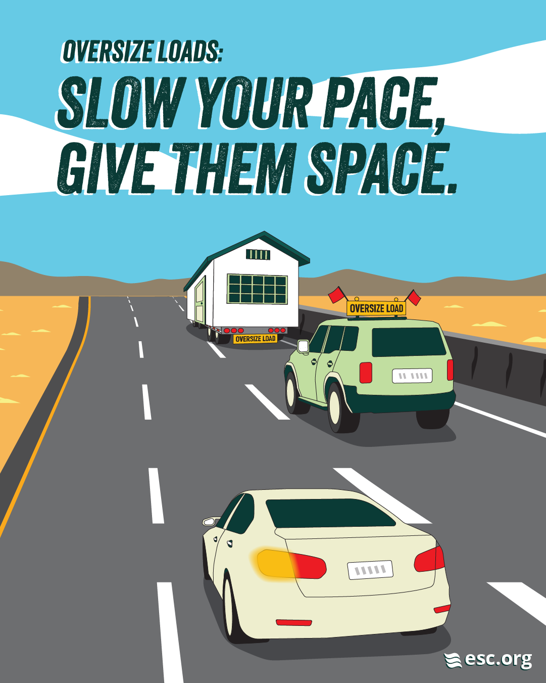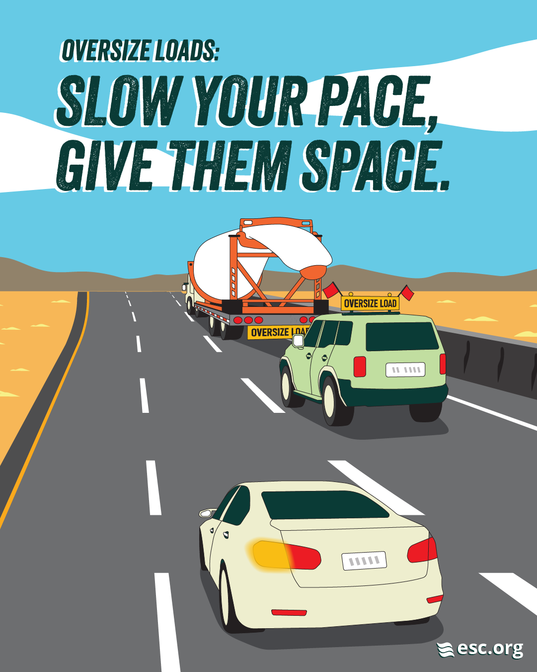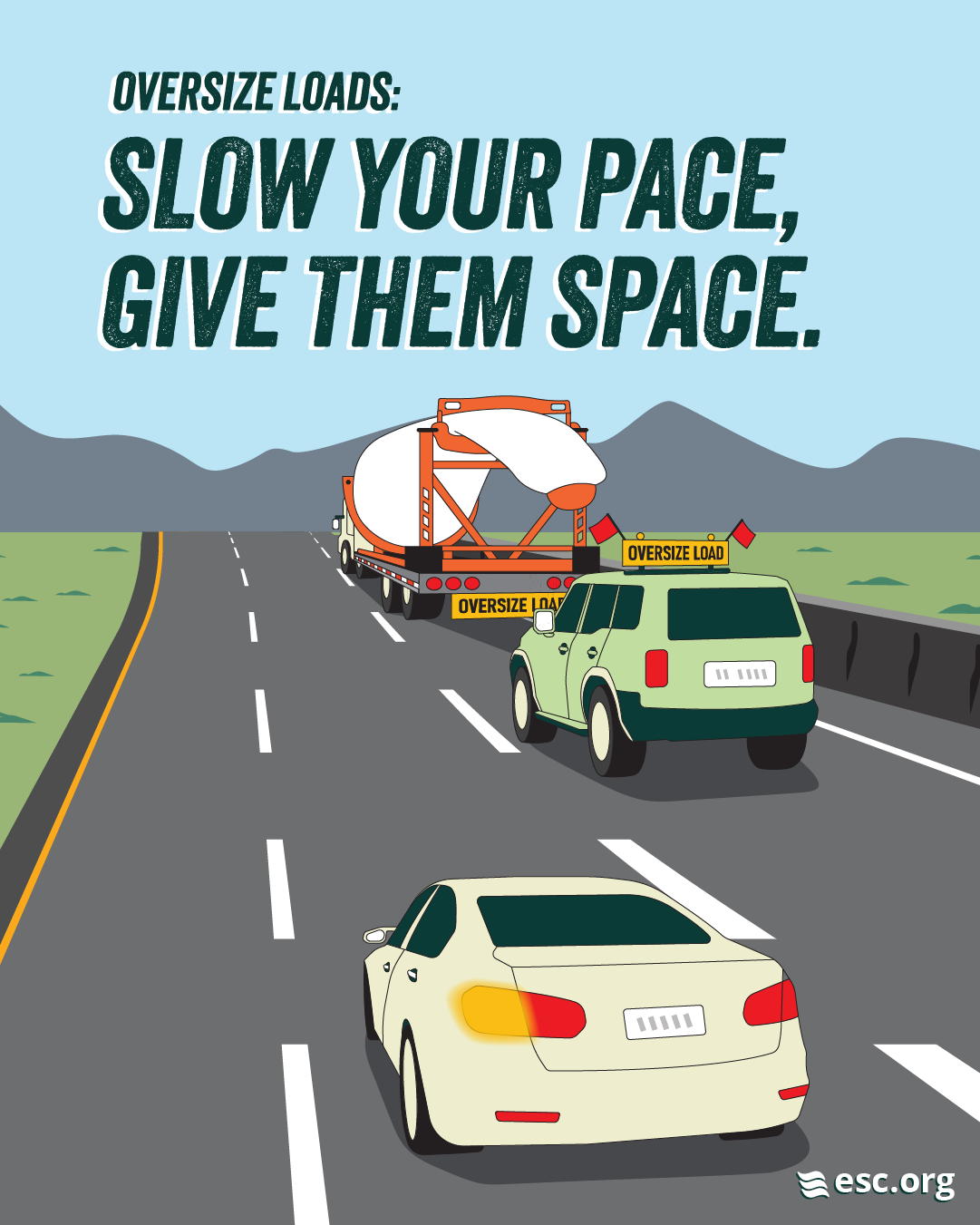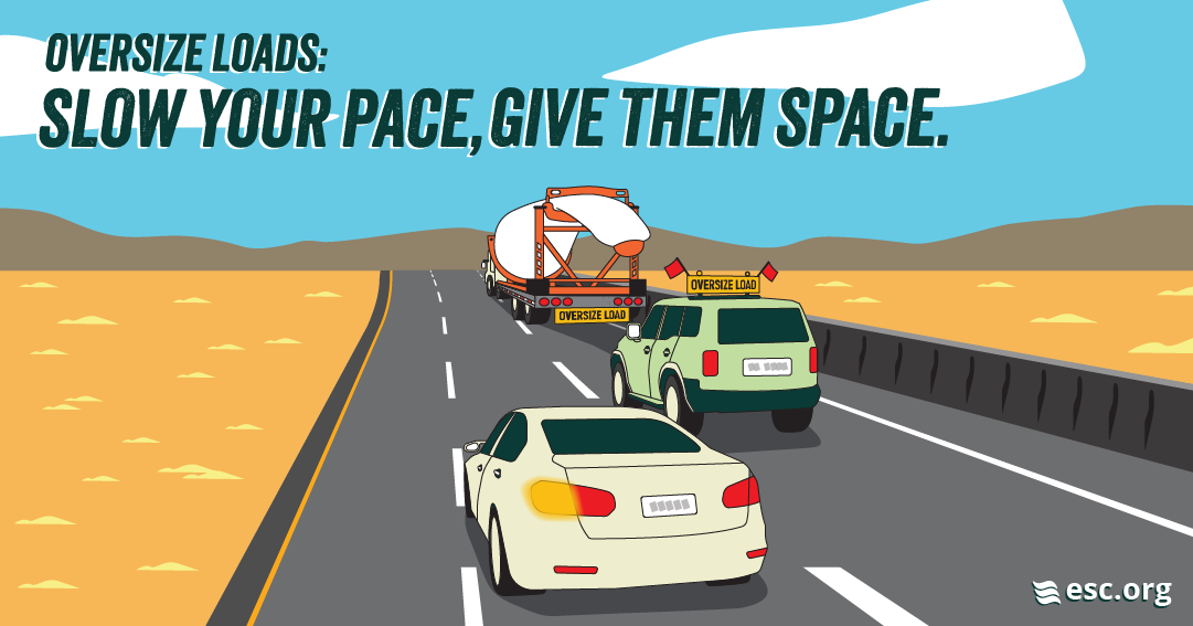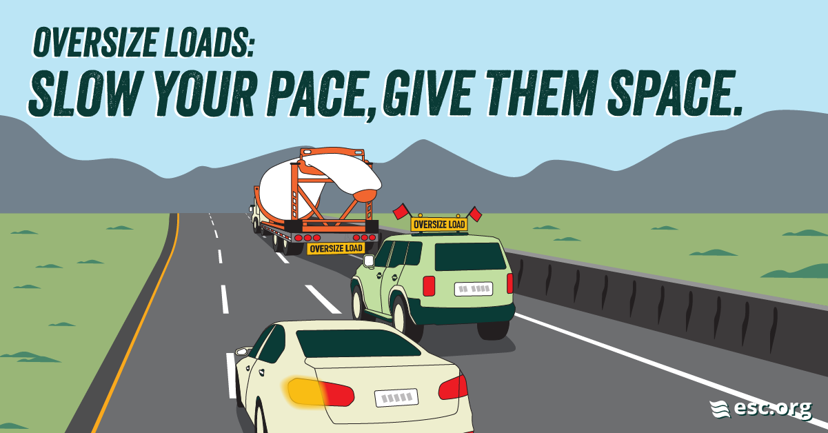 Oversize Loads can be hazardous for other drivers. Learn more about how to safely share the road with Oversize Loads and pilot cars, and help us spread the word through sharing our images, videos, and slogan.